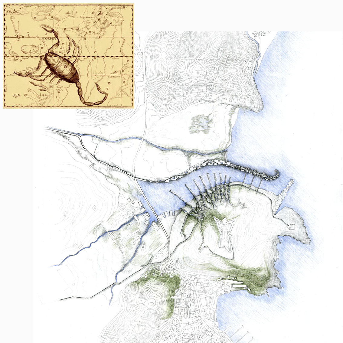 | La Geografia Sacra, proiettando il Cielo sulla Terra, consegna Lemno alla costellazione dello Scorpione.consegna Gradre che vienepia |