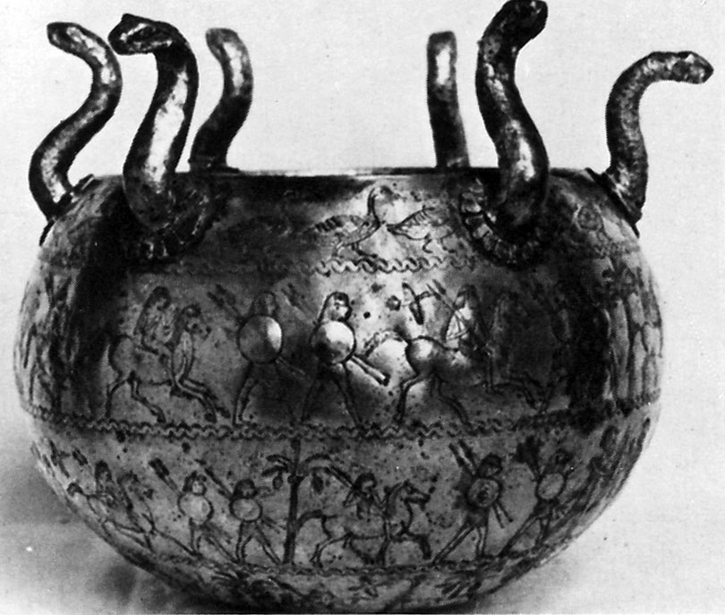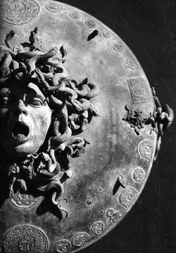 | Misteriosamente la testa pietrificante di medusa diviene un calderone circondato da serpenti. | L'albero della vita. Serpenti. | Generazione e rigenerazione. | |||