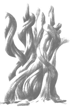 | Vegetazione d'Africa ove il tronco appare come fascio costretto di rami. | Anche nella fitomorfica del fantastico appare un tronco come fascio costretto di rami. | sulla Terra il serpente scorre nei più diversi siti, possiede le genti. Si scopre: le arti non possono essere dette primitive. | |||